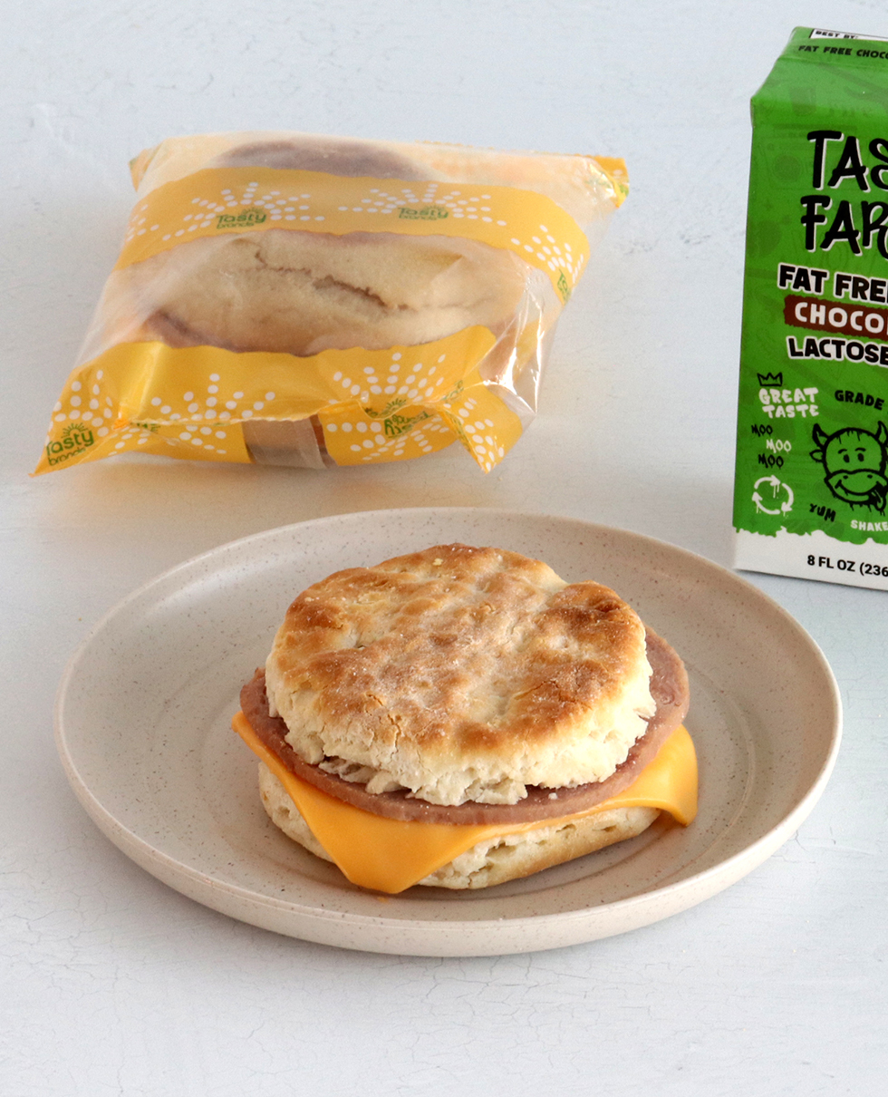 This individually wrapped Turkey Ham & Cheese on a Honey Wheat Biscuit sandwich delivers comfort and convenience in one tidy package. Sliced turkey ham and melty cheese are layered between a soft, lightly sweet honey wheat biscuit that’s baked to a golden finish.